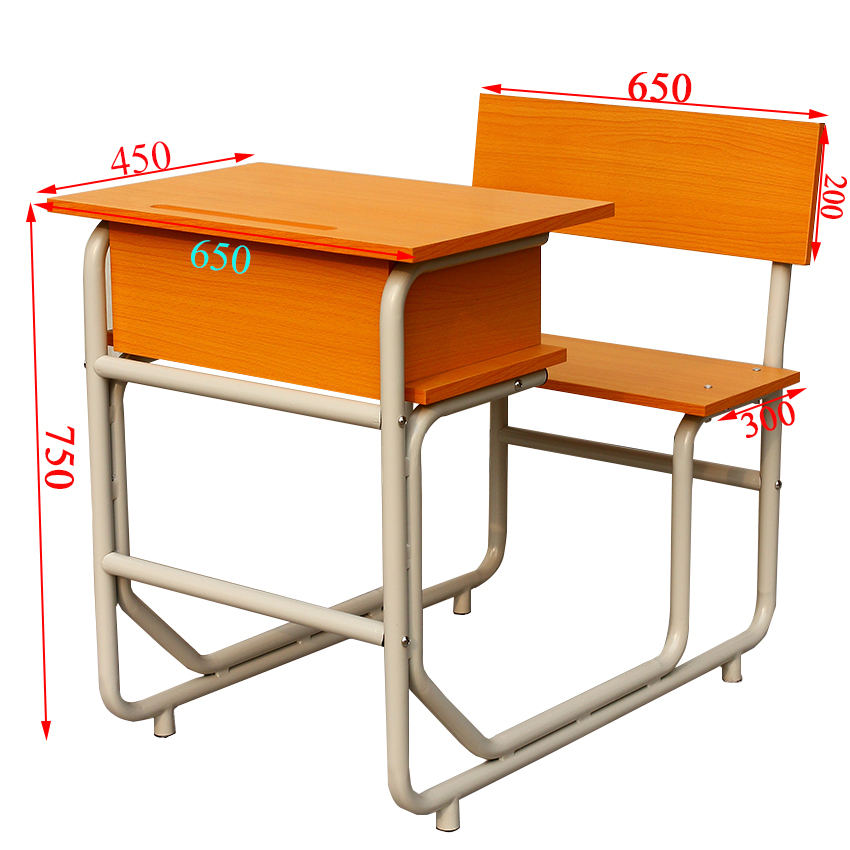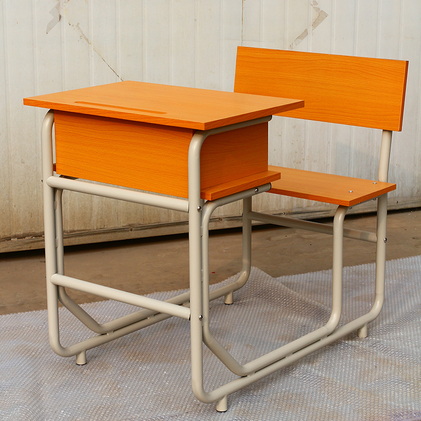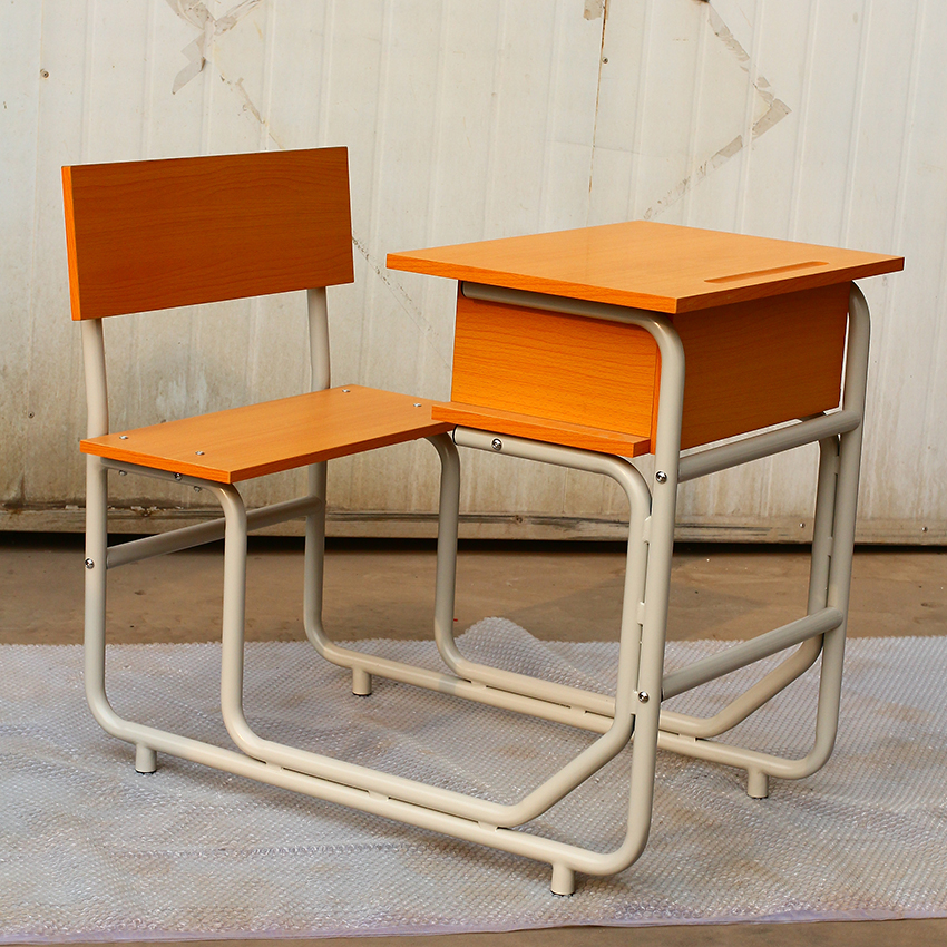 單人圓管課桌椅連體桌